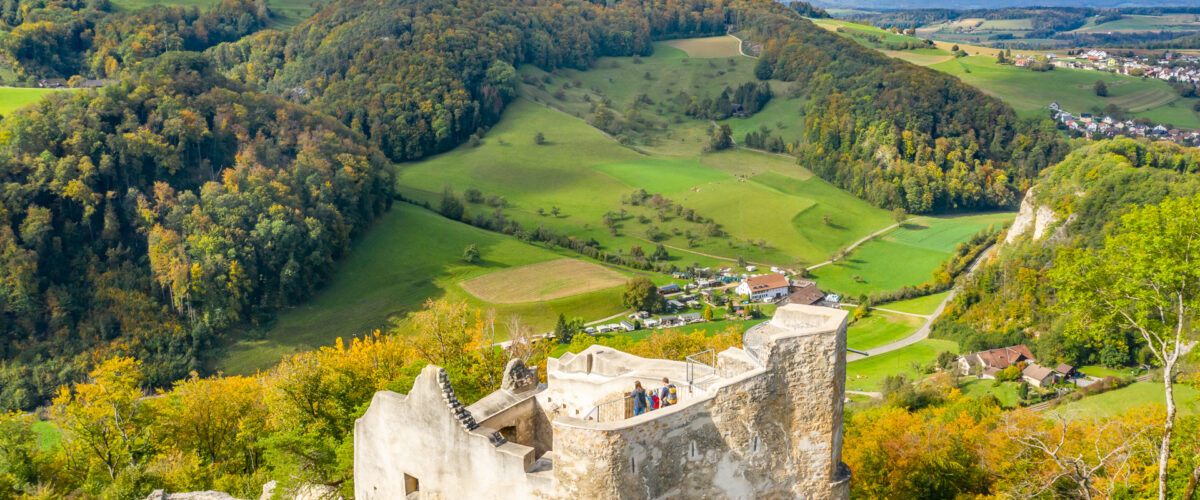 Der Mittelalter-Themenweg begleitet Familien auf dem Weg zur Burgruine und ersorgt sie mit vielen Informationen zum Leben der Ritter. Hier erfährst du, warum die Burgbewohner nie ohne Schlafmütze ins Bett gingen oder warum übergrosse Schuhe sehr beliebt waren. Unterwegs kannst du beim bestens ausgestatteten Rastplatz mit gedecktem Grillplatz und verschiedenen Spielmöglichkeiten im Wald eine Rast einlegen. Als krönender Abschluss der Wanderung lockt die imposante Burgruine Homburg mit einem grandiosen Rundblick von der Zinne des ehemaligen Wohnturms. baselland-tourismus.ch/burgen-touren
